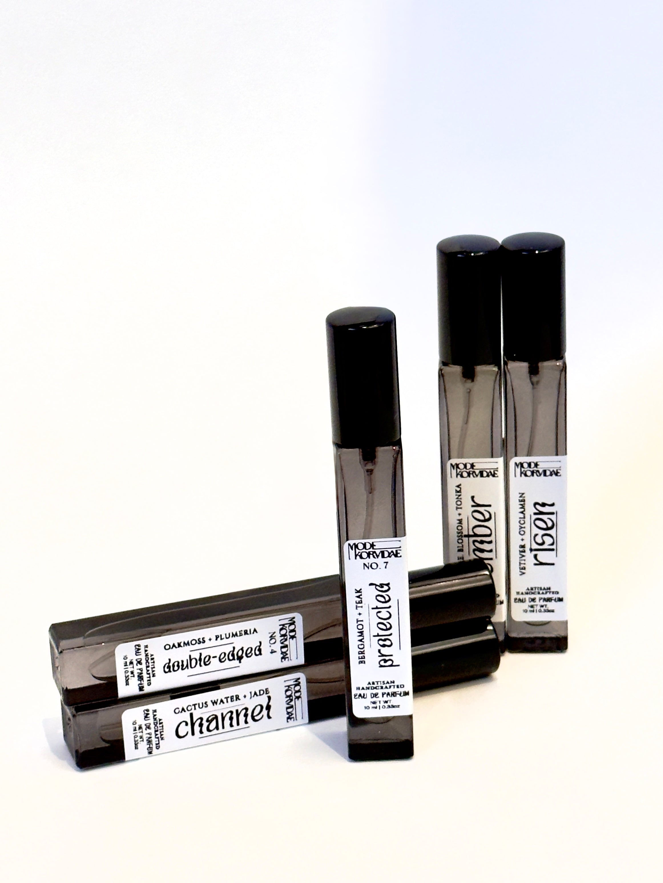 The Mode Korvidae Eau de Parfum collection is crafted as a series of finely balanced compositions, where careful blending and considered structure create fragrances meant to be worn every day. Each scent unfolds gradually on the skin, offering depth and longevity without overwhelming the senses.